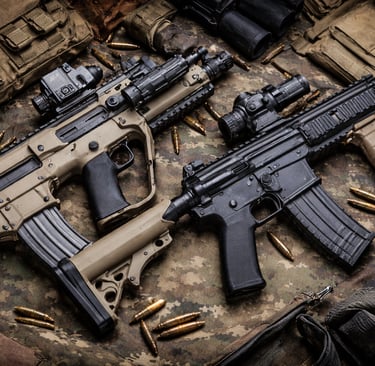 تعتبر بندقية تافور (Tavor) TAR-21 الإسرائيلية والبندقية هاكلر آند كوخ HK416 الألمانية من أبرز البنادق الهجومية الحديثة التي حظيت باهتمام واسع في الأوساط العسكرية. وعلى الرغم من اختلاف فلسفة تصميم كل منهما – حيث تعتمد الأولى تصميم بولب-أب (Bullpup) وال الثانية تصميمًا تقليديًا – فإنهما تشتركان في كونهما أسلحة موثوقة وفعّالة طوّرت لخدمة جنود المشاة والقوات الخاصة في بيئات قتالية متنوعة. في هذا المقال التحليلي نستعرض مقارنة شاملة بين التافور وHK416 من حيث المواصفات الفنية، الأداء الميداني، مدى الانتشار والاستخدام، سهولة الصيانة والتطوير، عوامل التكلفة وسلاسل التوريد، وأخيرًا اختلاف تصميم الهيكل بين نظام البولب-أب والنظام التقليدي الأمامي.